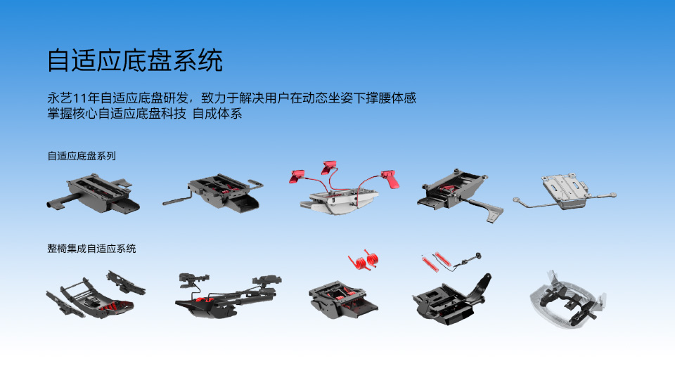 撐腰科技體系,擁有主動撐腰、隨動撐腰、可調撐腰、分區(qū)撐腰四條產品線,全方位的優(yōu)化坐健康系統(tǒng)。